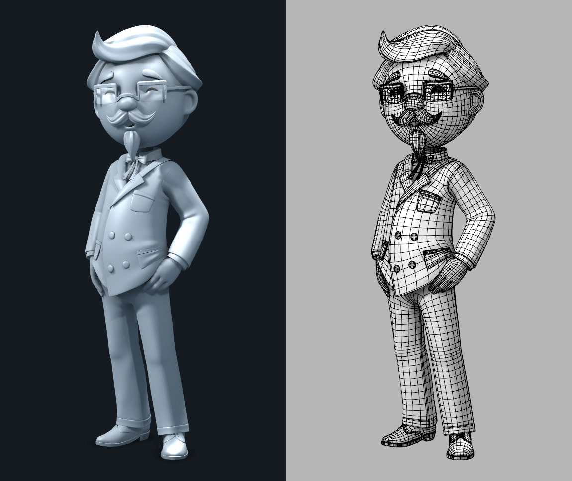 Character created for the KFC Colonel Kart Racers Game cinematic, a project by EmberLab studio.