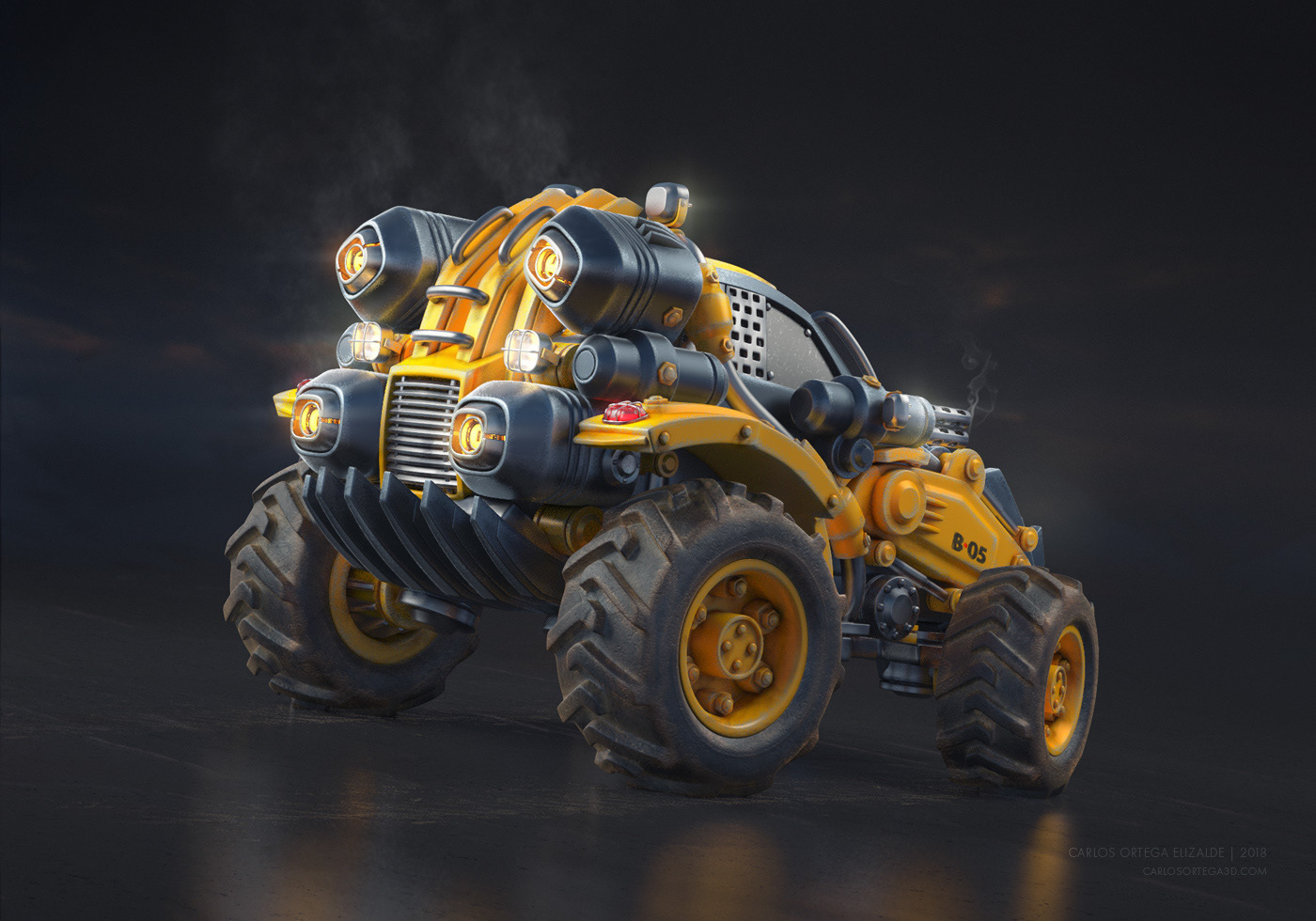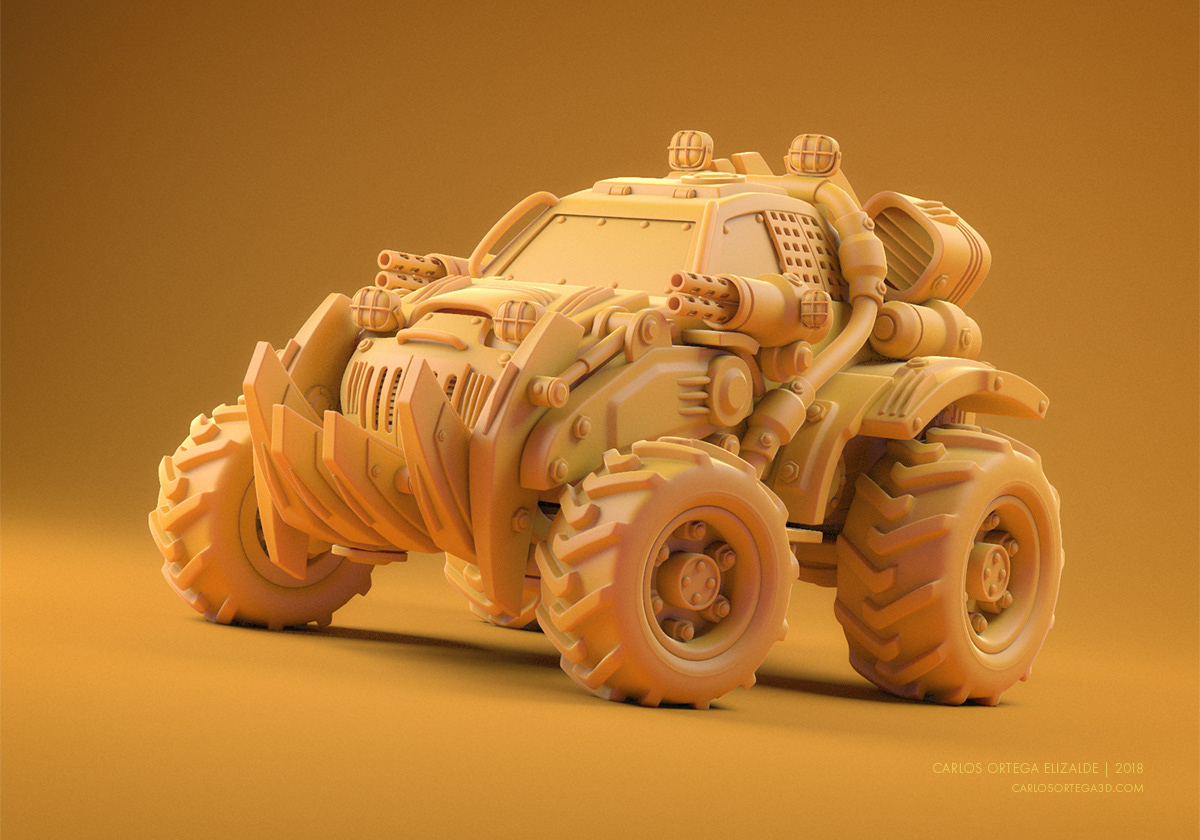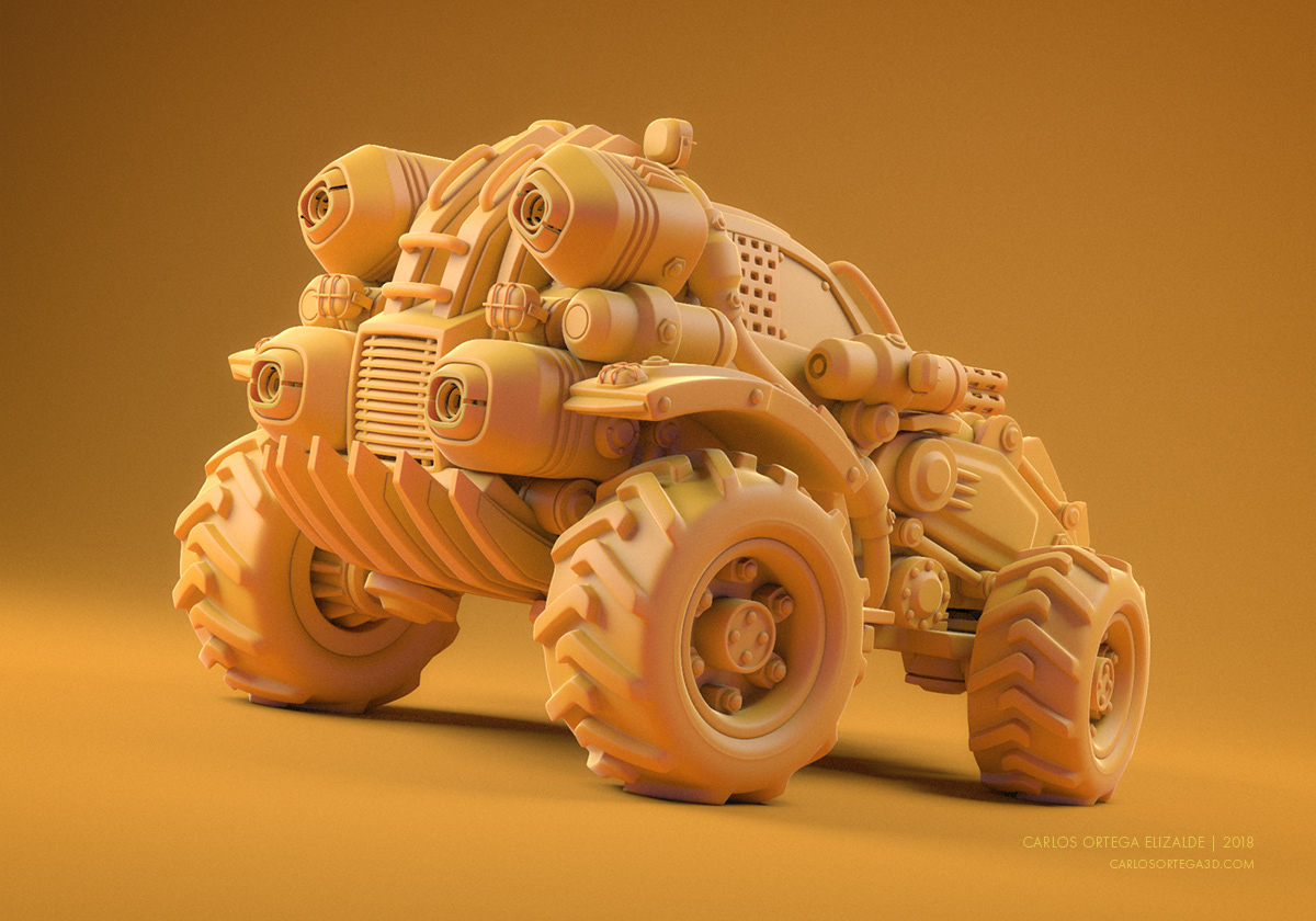 I used to do a lot of "speed modeling" in maya using time constraints, so I did it again just for fun 😊 I love big trucks, wheels and construction machinery, I took a few free hours and did this model inspired by some cat trucks. A tractor- car-battle - buggy thingy... not sure, it was just built on the go with nothing specific in mind but I plan to do more like this.